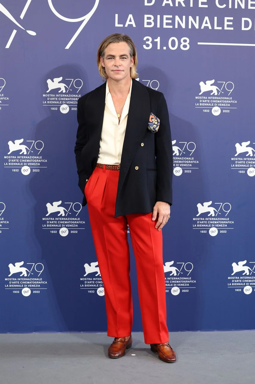 The Don’t Worry Darling star was dressed in an ensemble by Giuliva Heritage featuring a red pant and an open collar shirt.