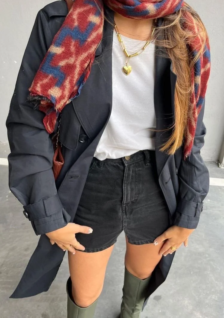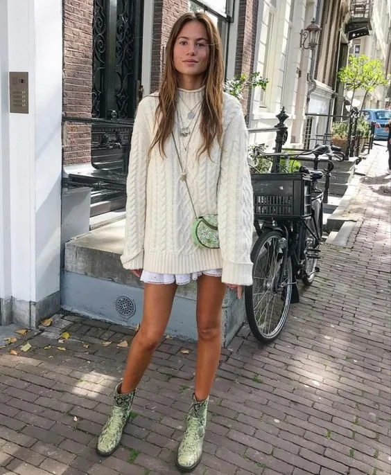 The shorts and sweater combo are a classic pair to embrace the mid-afternoon sunshine. While seemingly oxymoronic, it is a tried and true way to remain cool and comfortable during the few awkward hours of heat. A light sweater can be worn if the weather permits or slung around the shoulders as a practical, chic accessory.