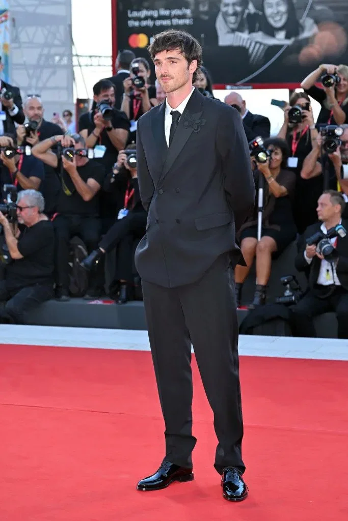 More recently, Elordi appeared at the 2023 Venice Film Festival for Sofia Coppola’s new movie Priscilla, in which he plays Elvis Presley. In true rockstar fashion, Elordi appeared at the festival in head-to-toe Valentino, with a double-breasted black tuxedo over a button-up shirt paired with a skinny black tie and black shoes. Of course, Elordi accessorized with his signature Cartier watch.