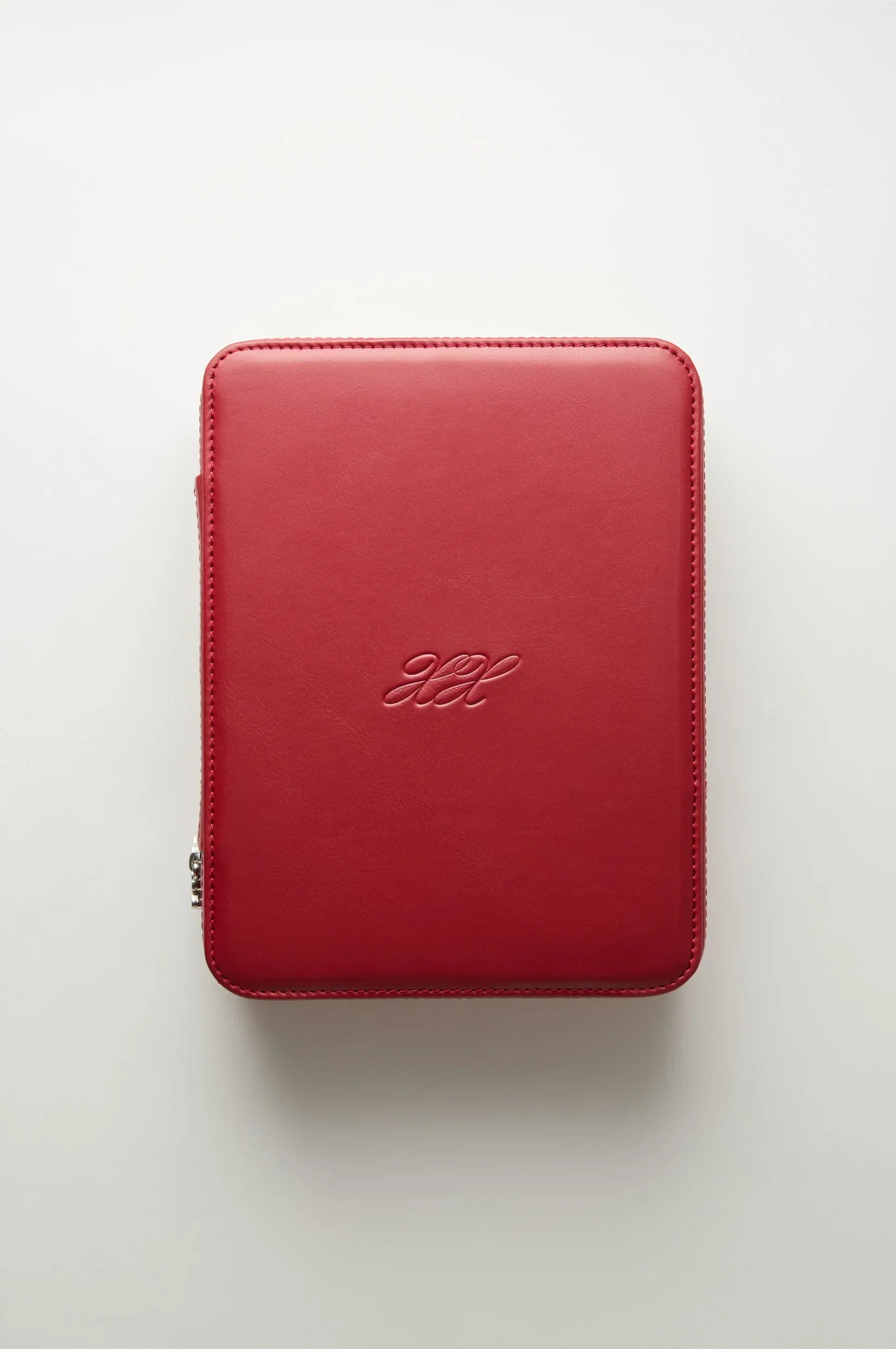 The customizable Jet-Setter eyewear travel case keeps frames protected from departure to arrival with its hardbound vegan leather exterior and ultra-durable zipper. There are three eyewear compartments inside and a soft pouch perfect for other travel essentials.