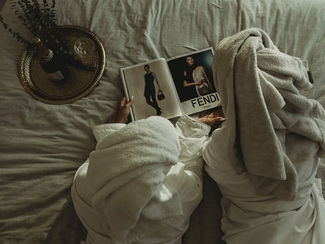 Turn your bedroom or bathroom into a mini spa retreat. Light candles, throw on robes, put on hydrating face masks, and turn off your phones. Debrief and relax before or after the holiday rush.
