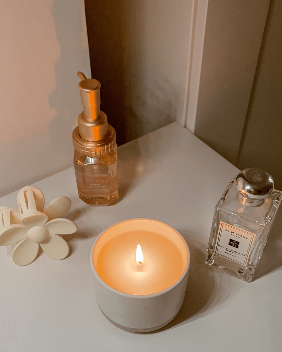 Adding a special scent to your night can increase dopamine and a sense of comfort. It can also add ambient lighting to help you romanticize your everyday routine.